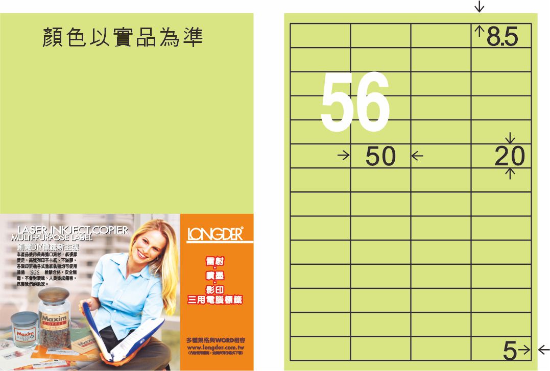 商品名稱:龍德 LD-824-G-C A4三用電腦標籤 淺綠色 / 包