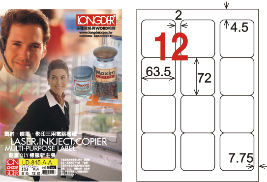 商品名稱:龍德 LD-815-A-A A4雷射影印標籤 白銅版 / 盒
