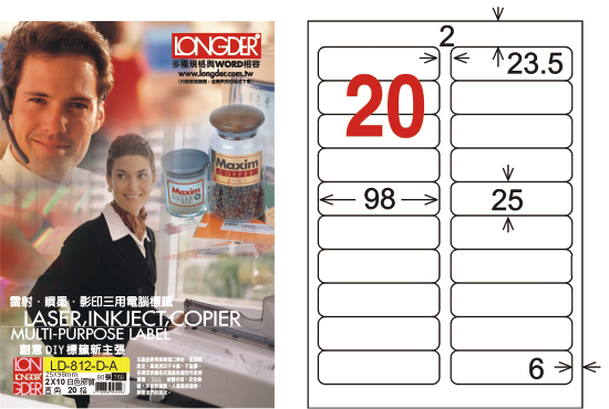 商品名稱:龍德 LD-812-D-A A4雷射影印標籤 白色PET / 盒