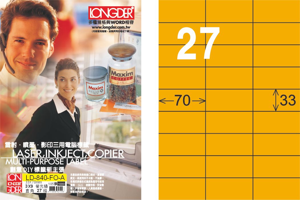 >龍德 LD-840-FO-A A4雷射影印標籤 螢光橘 / 盒