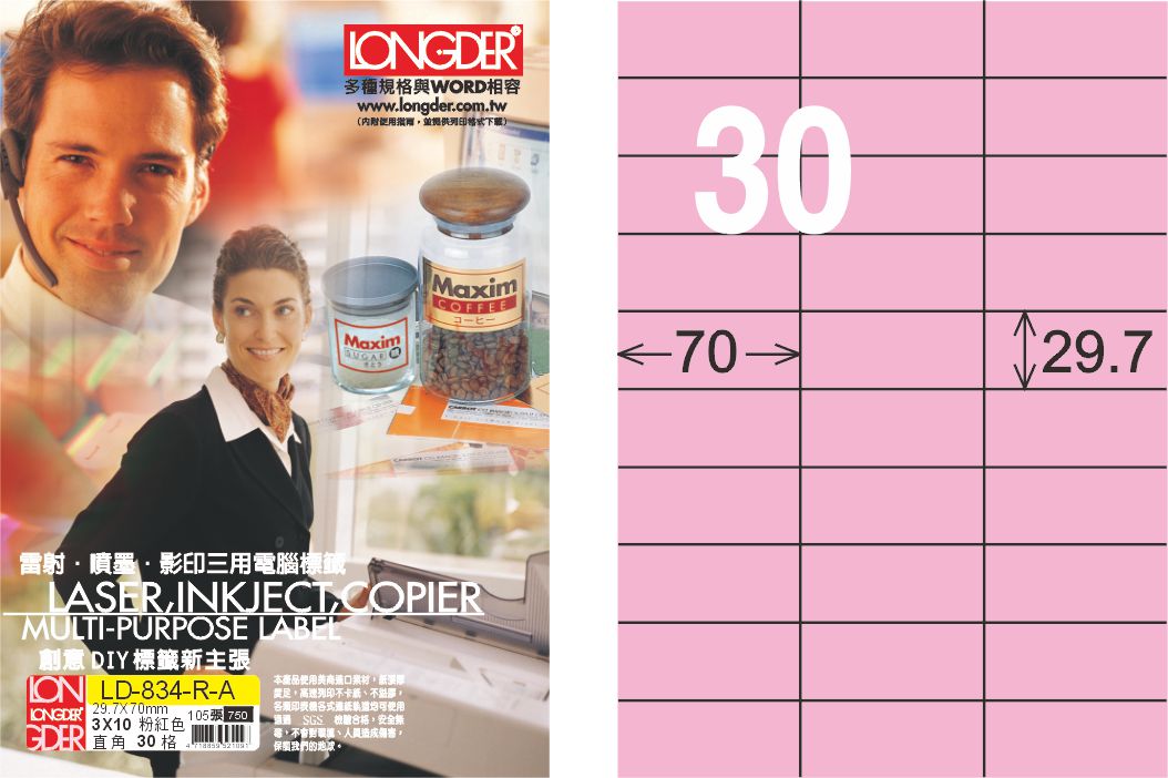 商品名稱:龍德 LD-834-R-A A4三用電腦標籤 粉紅色 / 盒
