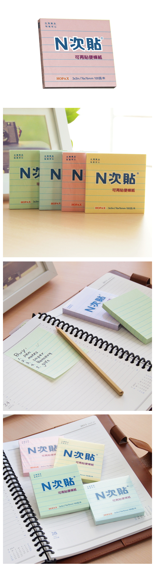 ◎品 名:N次貼 61702 格線型可再貼便條紙 3”x3”(76x76mm),粉紅◎單 位:100張/本◎型 號:61702◎規 格:3”x3”(76x76mm)◎顏 色:粉紅◎特 色:N次貼熱銷產品 標記提示輕鬆寫,分類備忘隨手貼 留言、註記、傳遞訊息,格線印刷、條列書寫方便!!