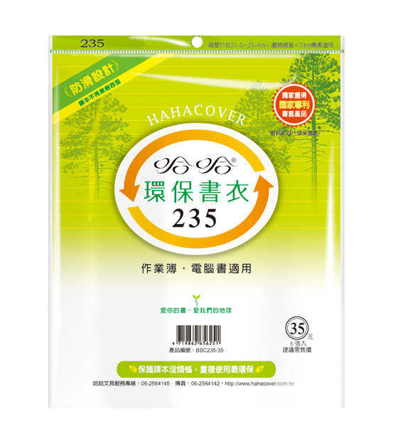 ◎ 品 名:哈哈書套 BBC235 環保書衣 23.6 x 39cm 作業簿.電腦書適用