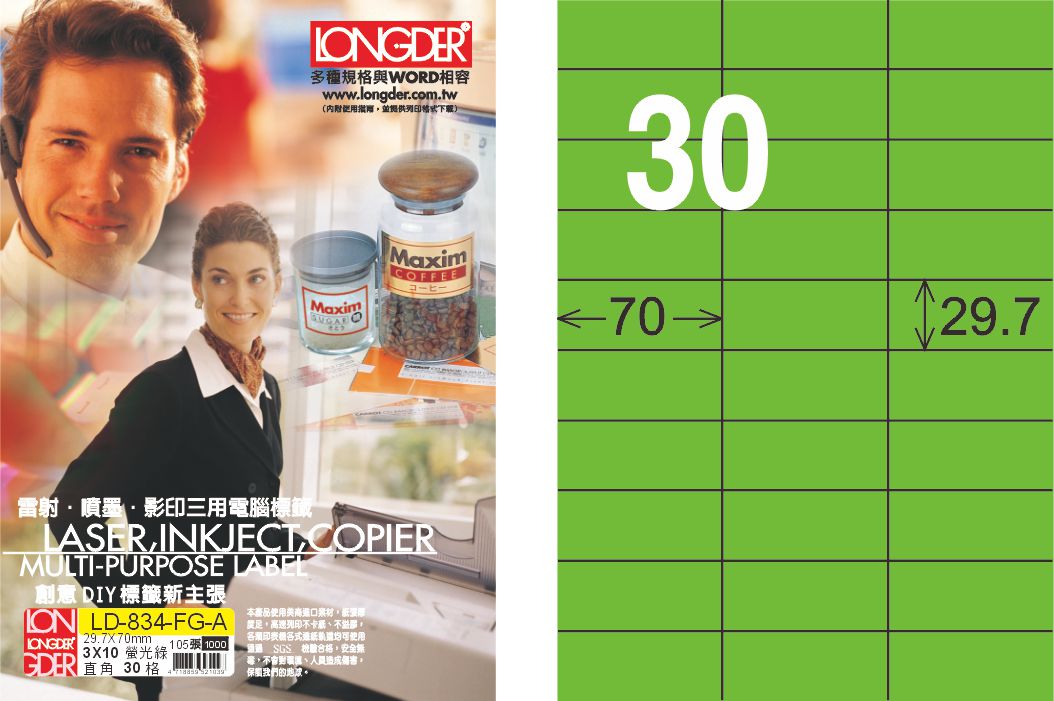 商品名稱:龍德 LD-834-FG-A A4雷射影印標籤 螢光綠 / 盒