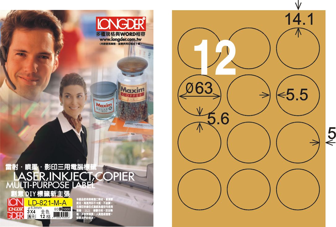 商品名稱:龍德 LD-821-M-A A4雷射影印標籤 金色 / 盒