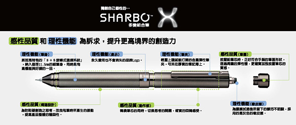 ●特性:靜音迴旋功能切換系統,無接縫設計轉換筆芯輕鬆柔暢