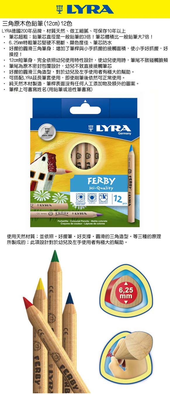 {振昌文具}【請先來電洽詢庫存】【德國LYRA】三角原木色鉛筆(12cm)12色 / 盒