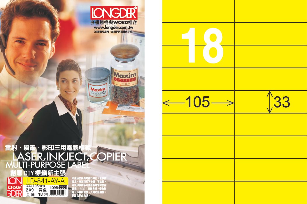 商品名稱:龍德 LD-841-AY-A A4雷射影印標籤 黃銅版 / 盒