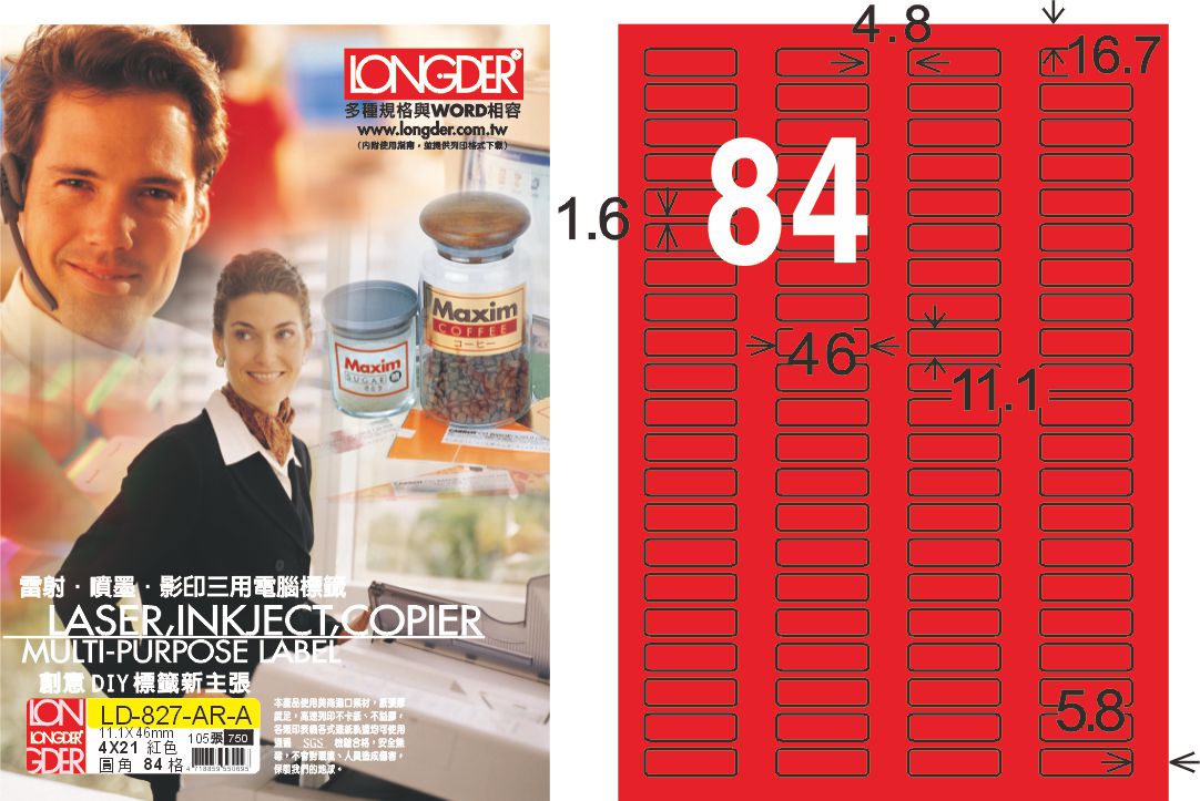 商品名稱:龍德 LD-827-AR-A A4雷射影印標籤 紅銅版 / 盒