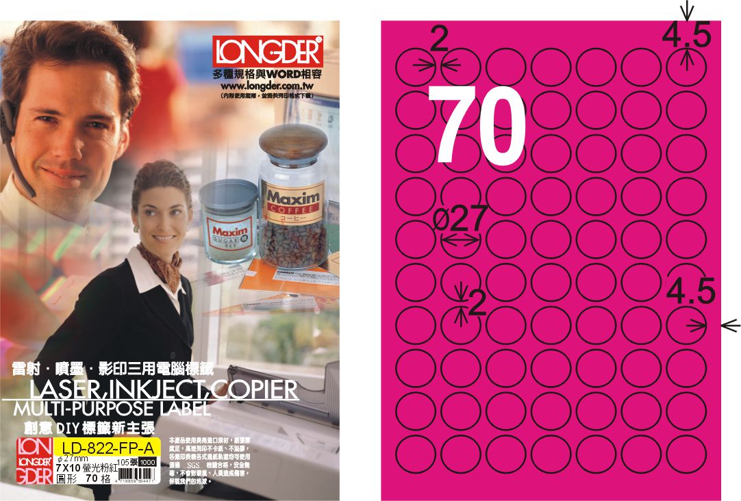 商品名稱:龍德 LD-822-FP-A A4雷射影印標籤 螢光粉紅 / 盒