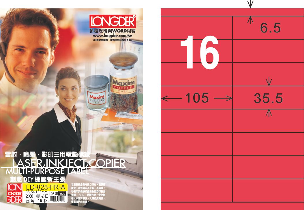商品名稱:龍德 LD-828-FR-A A4雷射影印標籤 螢光紅 / 盒