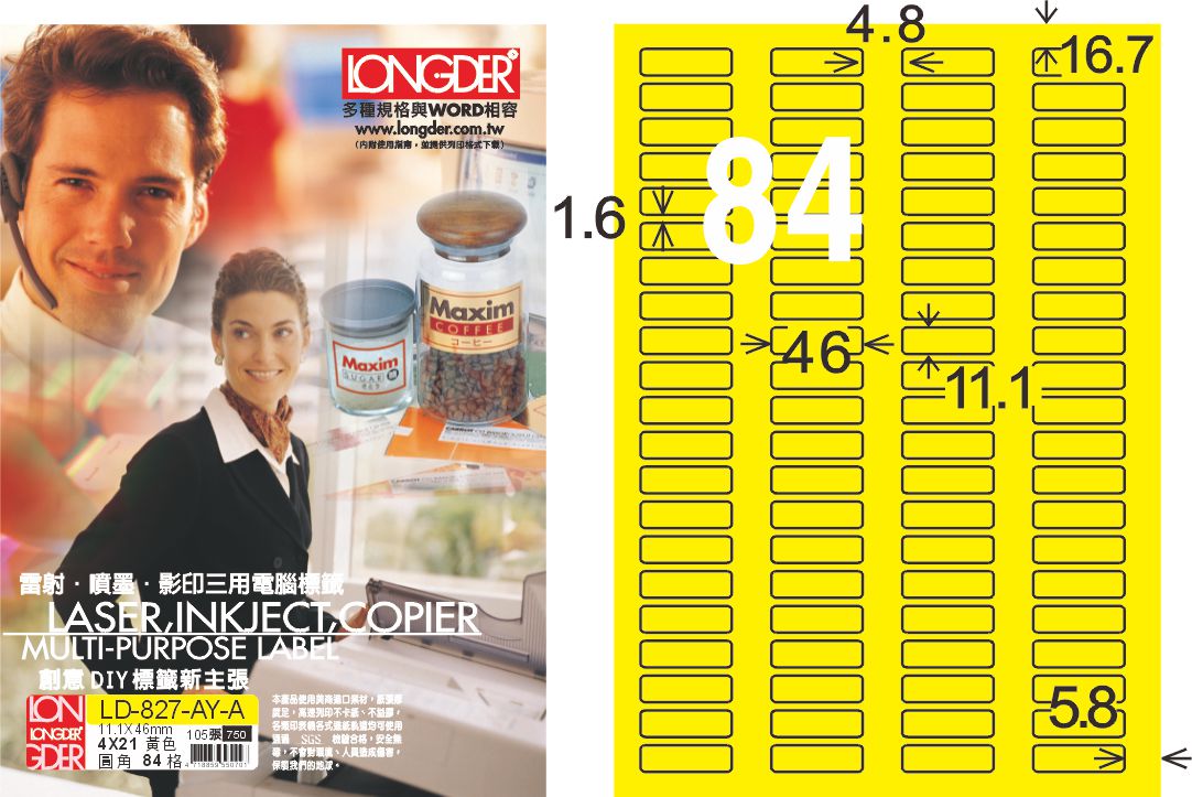 商品名稱:龍德 LD-827-AY-A A4雷射影印標籤 黃銅版 / 盒