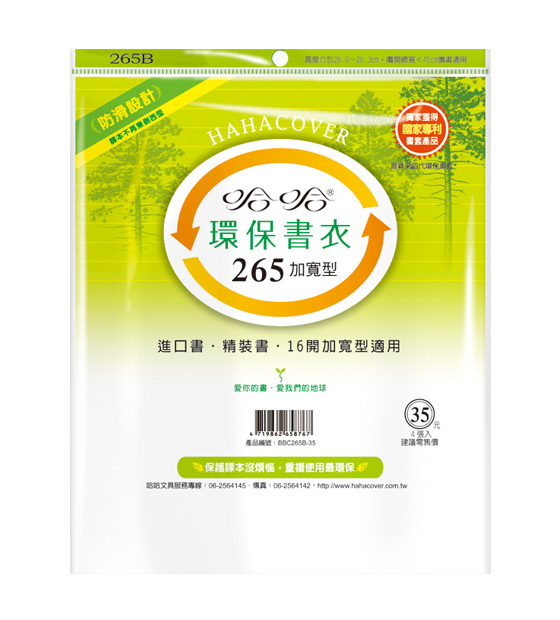 ◎ 品 名:哈哈書套 BBC265B 加寬型 環保書衣 26.5 x 45cm 進口書.精裝書.16開加寬型