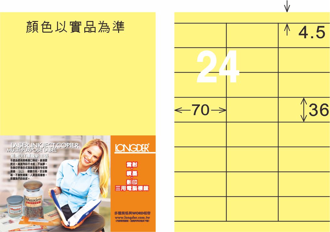 商品名稱:龍德 LD-826-Y-C A4三用電腦標籤 淺黃色 / 包