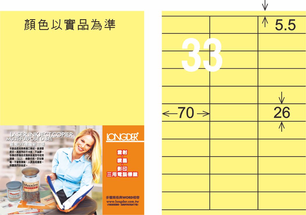 商品名稱:龍德 LD-835-Y-C A4三用電腦標籤 淺黃色 / 包