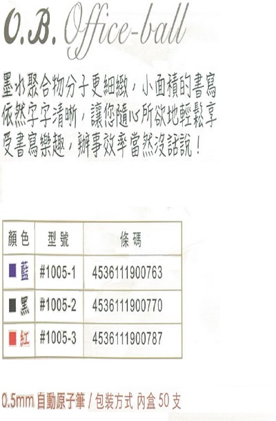 O.B. Office-ball自動原子筆0.5mm (50支/盒) OB#1005