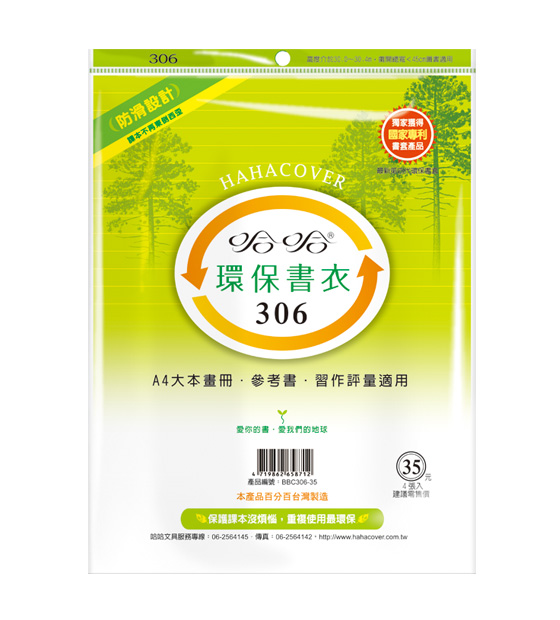 ◎ 品 名:哈哈書套 BBC306 環保書衣 30.6 x 45cm A4大本畫冊.參考書.習作評量適用