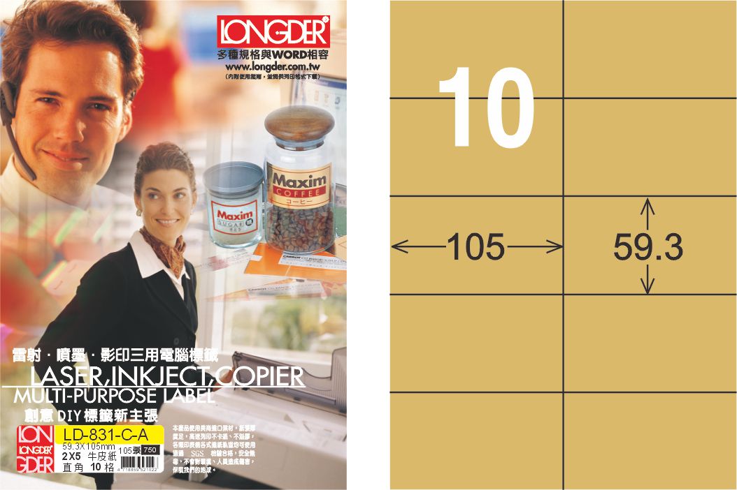 商品名稱:龍德 LD-831-C-A A4三用電腦標籤 牛皮紙 / 盒