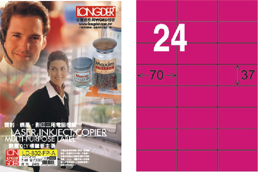 商品名稱:龍德 LD-802-FP-A A4雷射影印標籤 螢光粉紅 / 盒