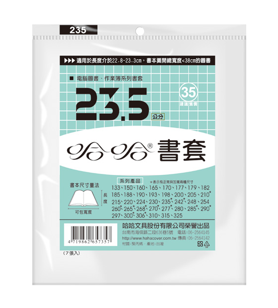 ◎ 品 名:哈哈書套 BC235 傳統塑膠PP書套 23.5 x 38.5cm 電腦圖書.作業簿適用