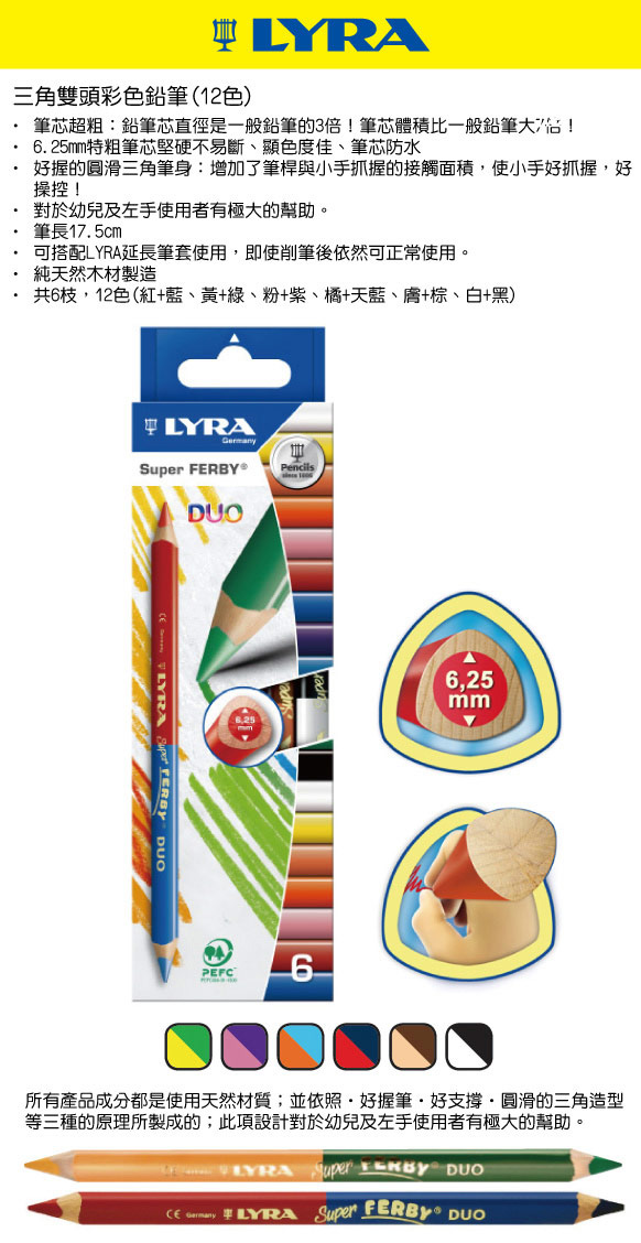 >{振昌文具}【請先來電洽詢庫存】【德國 LYRA】3791069 三角雙頭彩色鉛筆 12色/盒