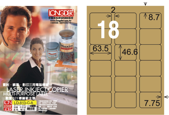 商品名稱:龍德 LD-813-C-A A4三用電腦標籤 牛皮紙 / 盒