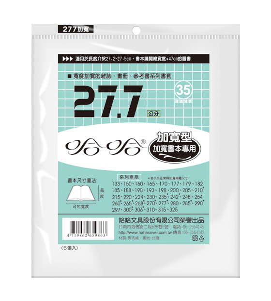 ◎ 品 名:哈哈書套 BC277B 傳統塑膠PP書套 27.7 x 47.5cm 加寬型雜誌.畫冊.參考書適用