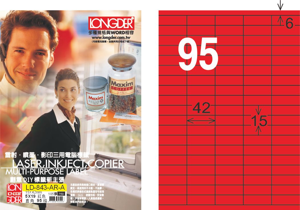 商品名稱:龍德 LD-843-AR-A A4雷射影印標籤 紅銅版 / 盒