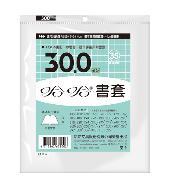 ◎ 品 名:哈哈書套 BC300 傳統塑膠PP書套 30.1 x 44.5cm A4大本畫冊.參考書.