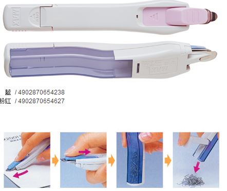 商品名稱:美克司 MAX-RZ-10S 除針器 4色 / 台 商品單位:台 商品型號:MAX-RZ-10S 除針器商品規格:*顏色2色(粉紅.藍)*特性:附磁性收納盒【廠商介紹】廠商代碼:X12