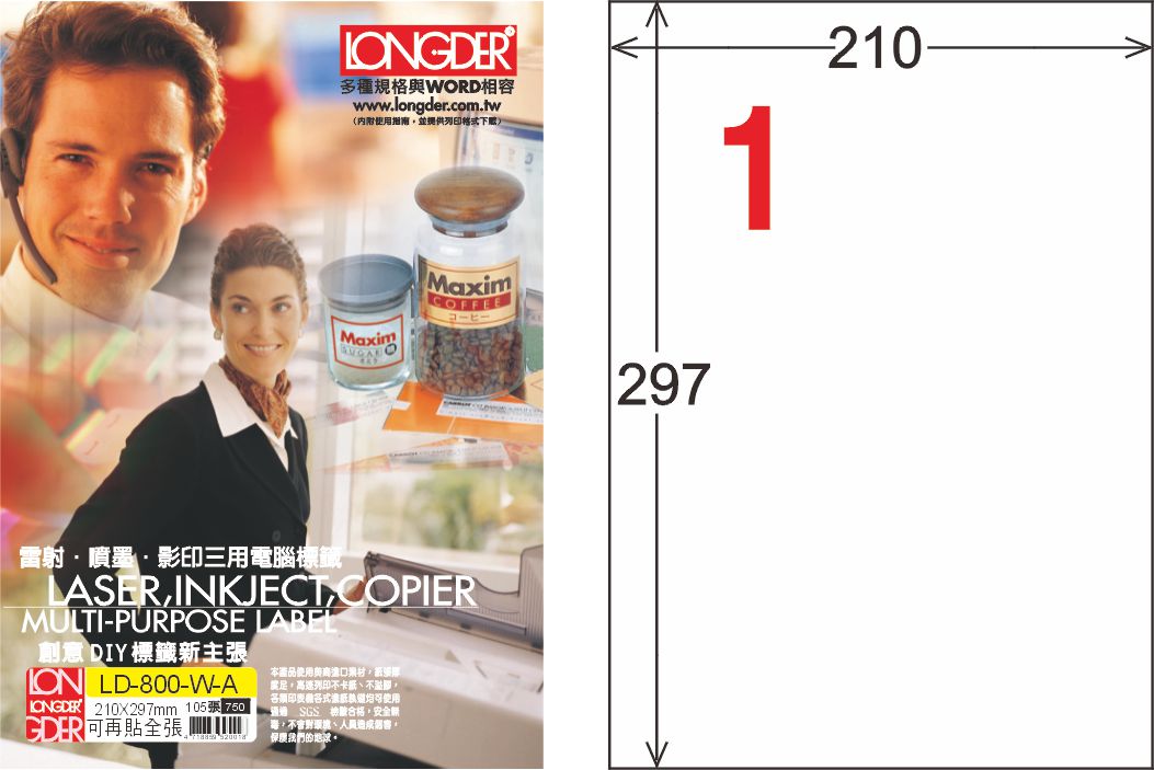商品名稱:龍德 LD-800-WR-A A4模造可再貼 白色 / 盒