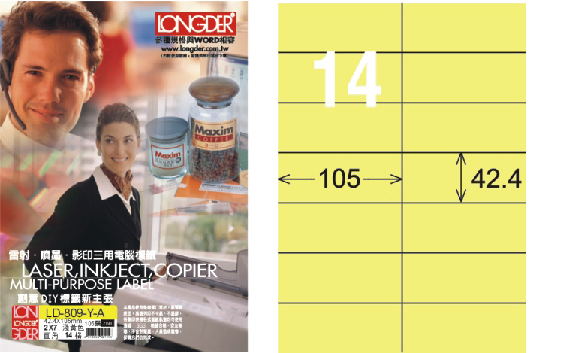 商品名稱:龍德 LD-809-Y-A A4三用電腦標籤 淺黃色 / 盒