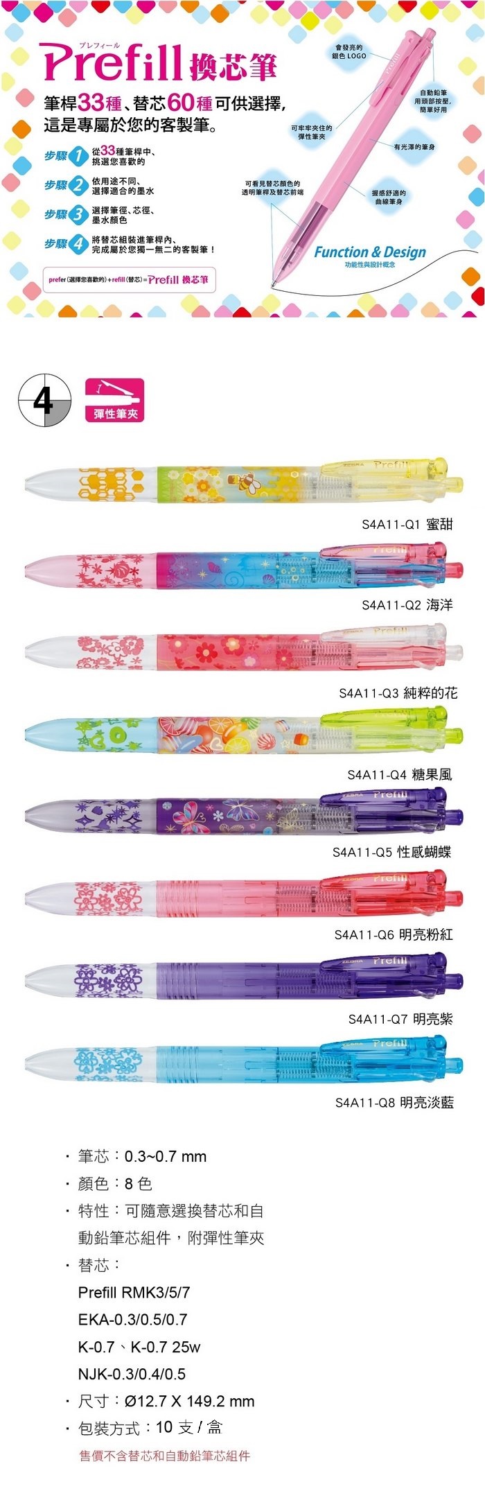 >日本 斑馬 Prefill 換芯筆 亮彩版 四色 多功能 自動鉛筆 原子筆 鋼珠筆 (不含替芯筆芯) S4A11 筆桿 10支/盒