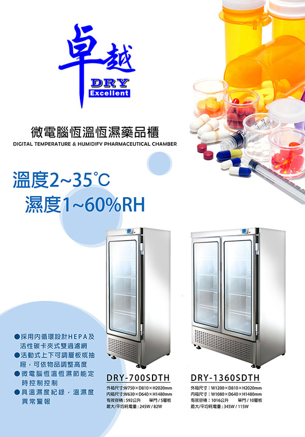 卓越 微電腦恆溫恆濕藥品櫃 DRY-700SDTH /台