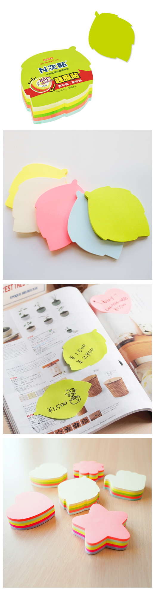 四邊皆可隨意撕取不受方向限制,易撕好黏書寫流暢,多款趣味造型,