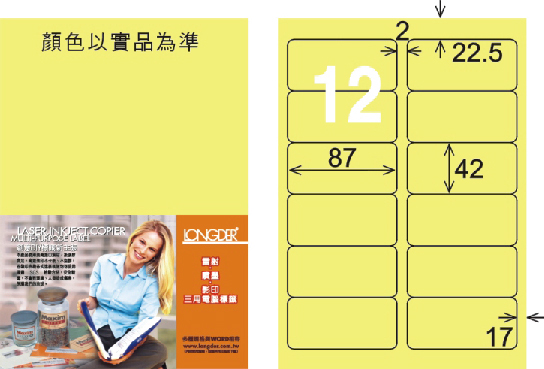 >龍德 LD-810-Y-C A4三用電腦標籤 淺黃色 / 包