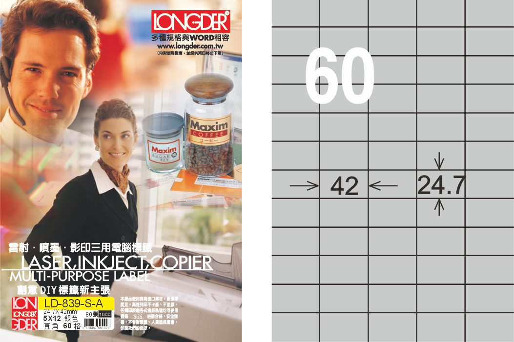 >龍德 LD-839-S-A A4雷射影印標籤 銀色 / 盒