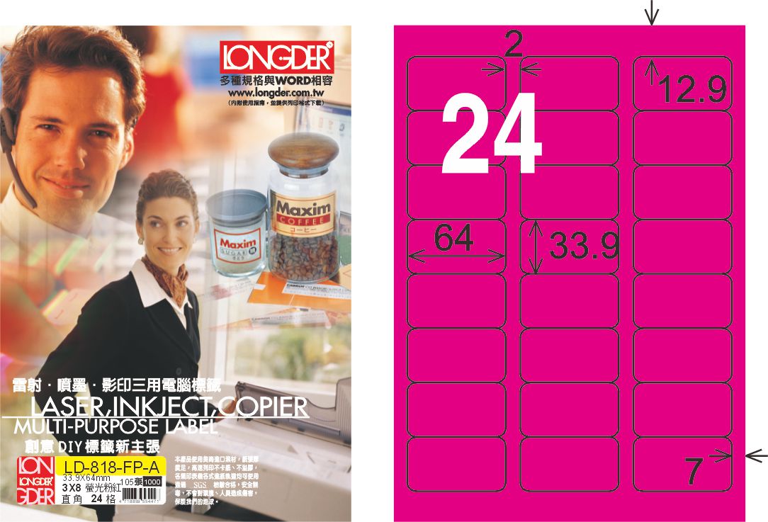 商品名稱:龍德 LD-818-FP-A A4雷射影印標籤 螢光粉紅 / 盒