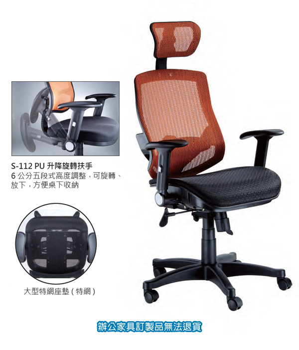 ◎品名:特級全網椅/LV 優麗椅 LV-999 升降扶手、無段鎖定底盤