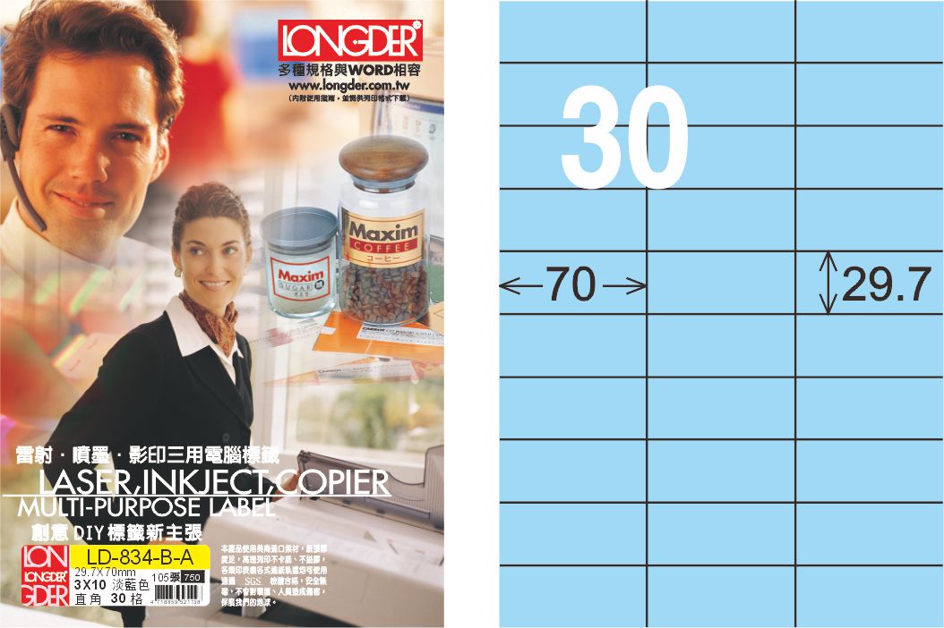 商品名稱:龍德 LD-834-B-A A4三用電腦標籤 淺藍色 / 盒