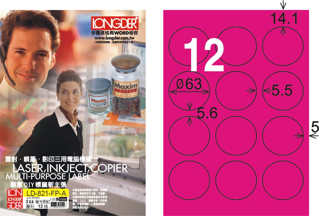 商品名稱:龍德 LD-821-FP-A A4雷射影印標籤 螢光粉紅 / 盒