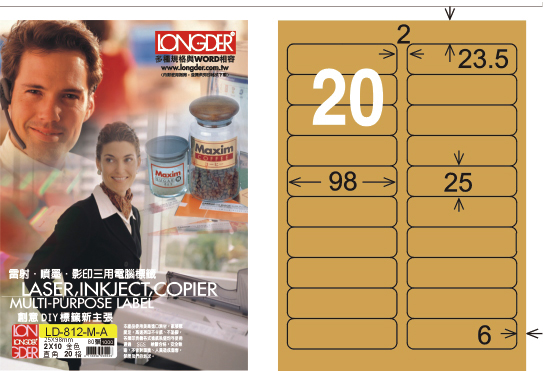 商品名稱:龍德 LD-812-M-A A4雷射影印標籤 金色 / 盒