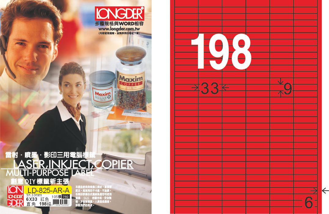 商品名稱:龍德 LD-825-AR-A A4雷射影印標籤 紅銅版 / 盒