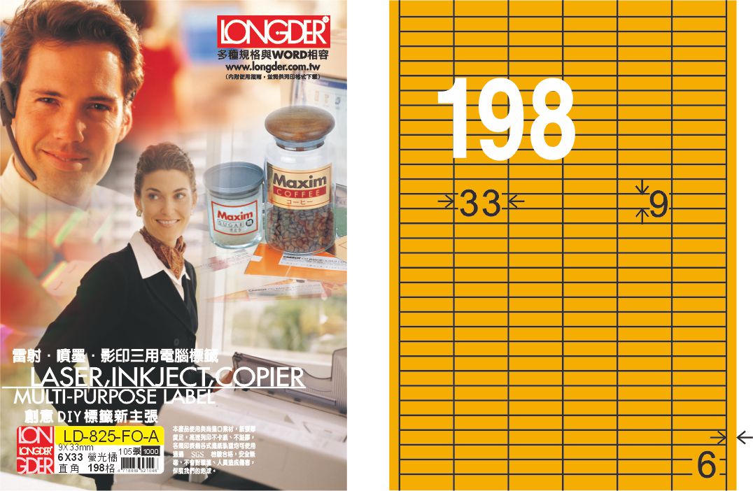 商品名稱:龍德 LD-825-FO-A A4雷射影印標籤 螢光橘 / 盒