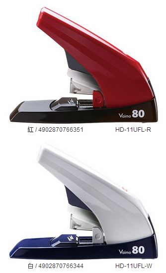 商品名稱:美克司 MAX Vaimo 80 HD-11UFL 釘書機 2色 / 台商品單位:台商品型號:MAX Vaimo 80 HD-11UFL 釘書機商品規格:*顏色2色(紅、白)*釘書針No.11-10 mm/No.11-1M*特性:一次可釘2張~80張超省力專利雙槓桿結構 十段裝釘位置調整鈕(7.5至30mm) 針腳平貼*外觀尺寸153 x 63 x 202 mm購買釘針請按下方No.11-1MNo.11-10M【廠商介紹】廠商代碼:X12責任代碼:CXZ