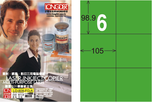 商品名稱:龍德 LD-808-FG-A A4雷射影印標籤 螢光綠 / 盒