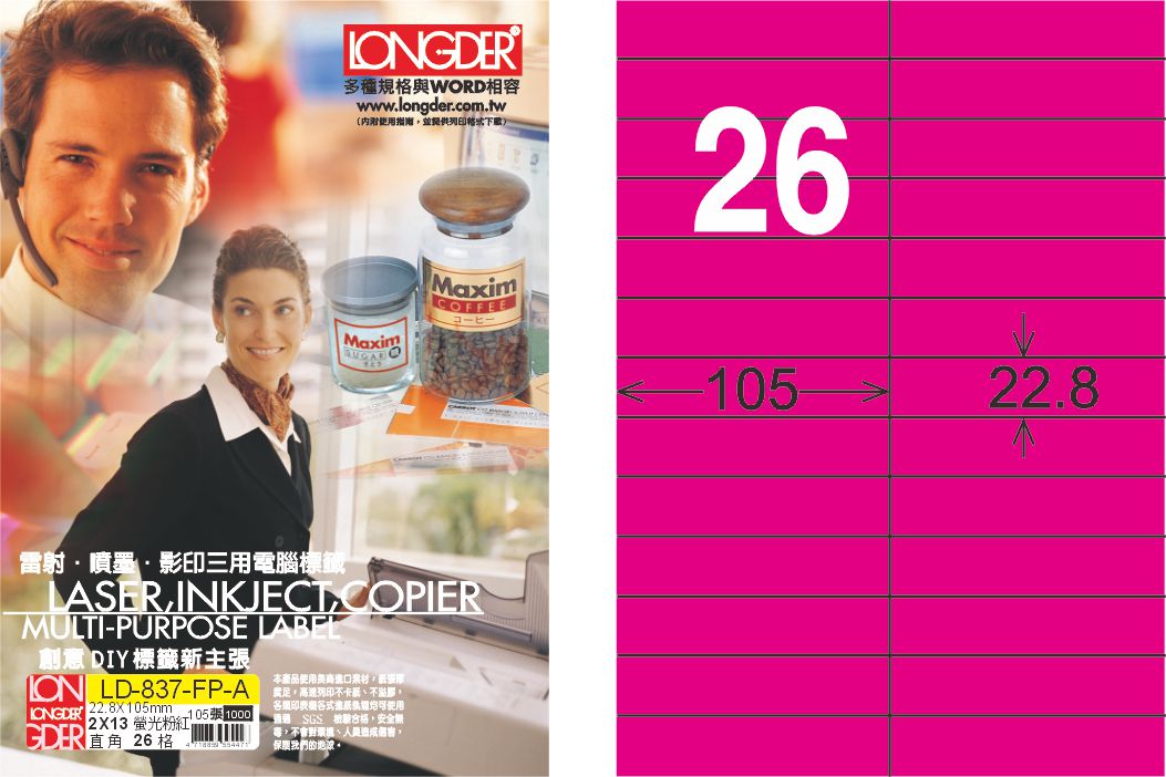 商品名稱:龍德 LD-837-FP-A A4雷射影印標籤 螢光粉紅 / 盒