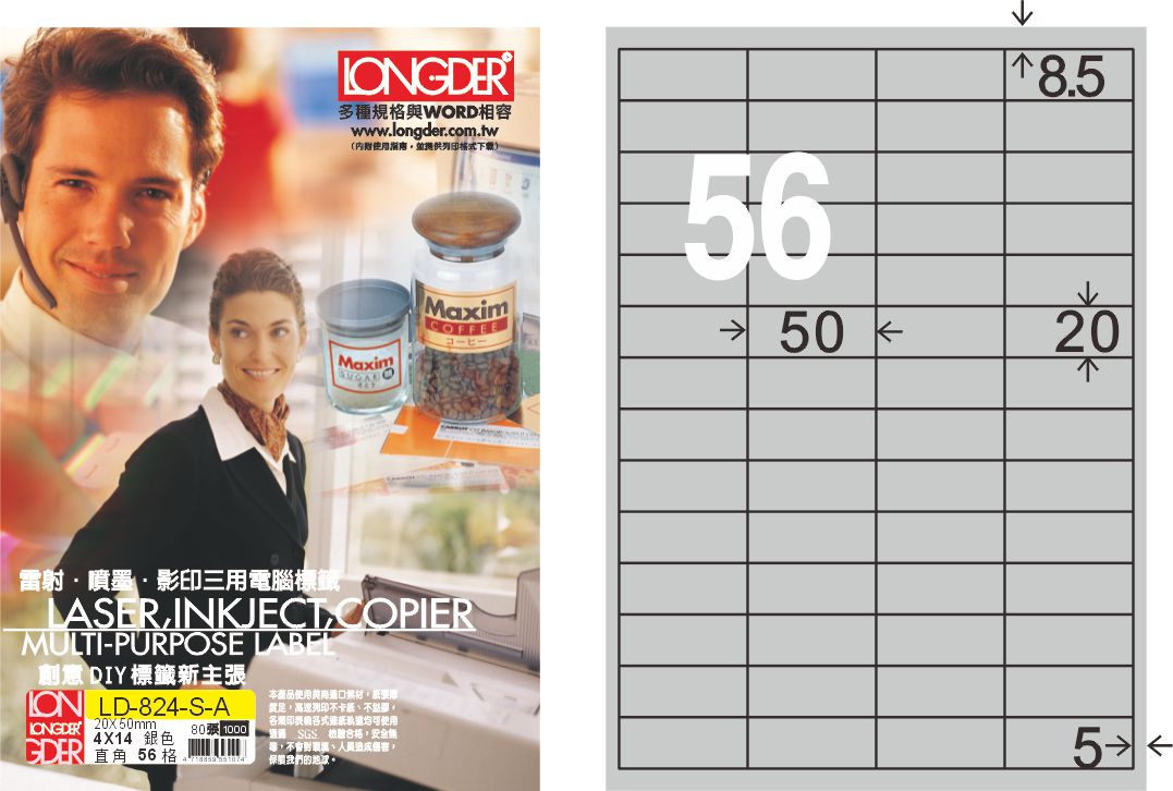 商品名稱:龍德 LD-824-S-A A4雷射影印標籤 銀色 / 盒