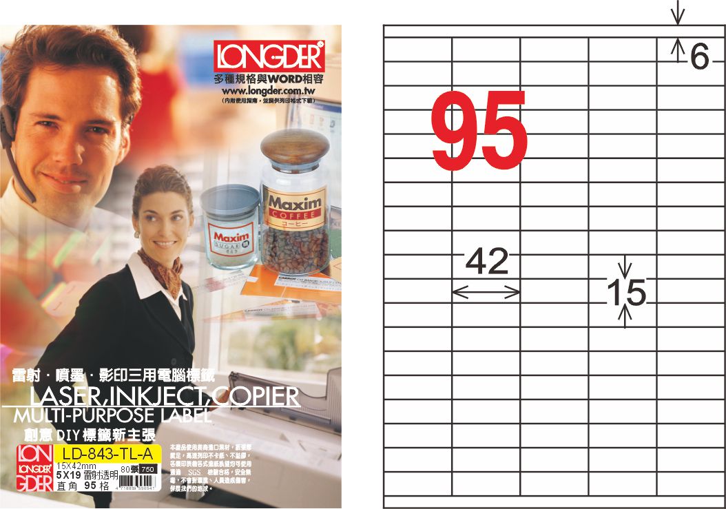 商品名稱:龍德 LD-843-TL-A A4雷射影印標籤 透明PET(可列印) / 盒