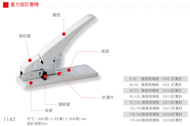 商品名稱:SDI手牌 1142 高張數重力型釘書機 / 支
